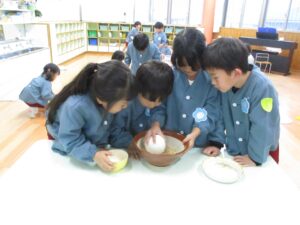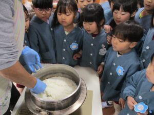 「湯気がでてきた!」と興味津々のゆり組さん🎶