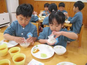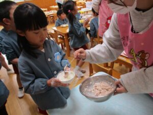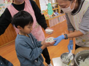 お釜からご飯を入れてもらい、自分でにぎにぎ🍙