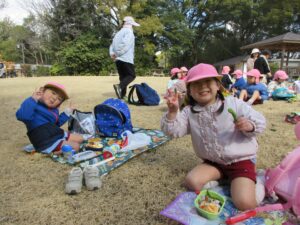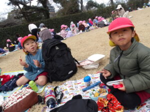 お弁当はさくら・きく・ゆり組一緒の広場で食べました🍴