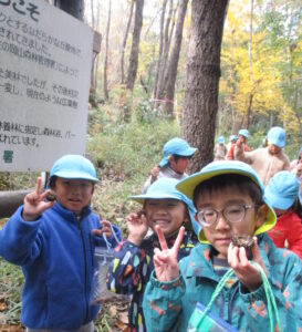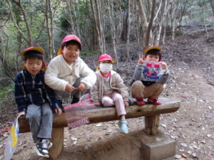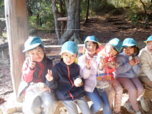 山登りを頑張った後は、お菓子やおにぎりを食べてパワーチャージ😁