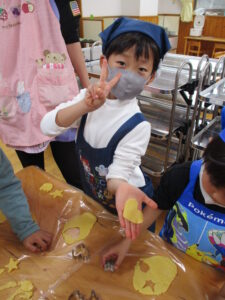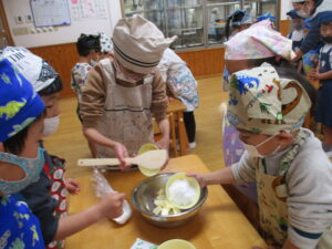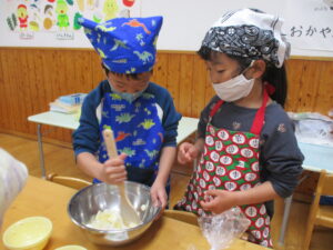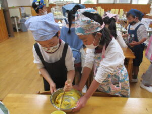 お友だちと一緒に協力しながら生地作りを進めていきました。