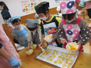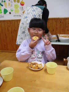 自分たちで1から作ったクッキーは格別だったようで「美味しい😋」とお友だちと一緒に食べていた
