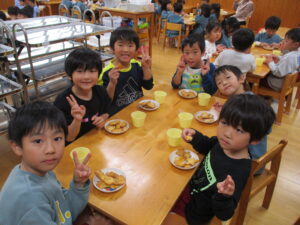 出来上がったクッキーは三時のおやつと一緒に食べました。