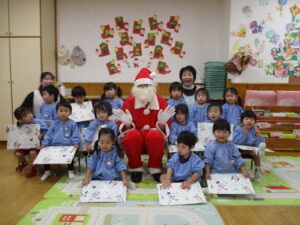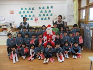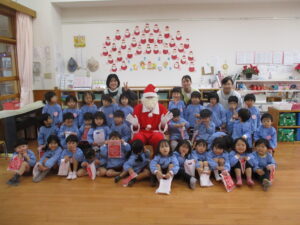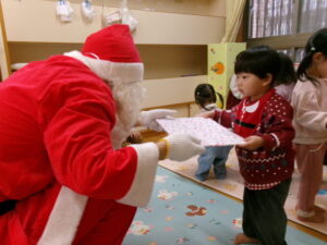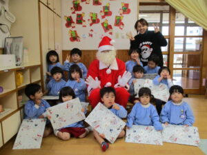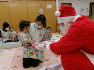 サンタさんに少しびっくりして泣いてしまうお友だちもいましたが