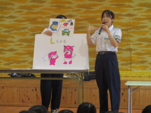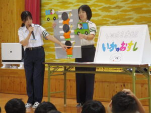 左右を確認する練習をしました。みんな大きな声で言えていました。