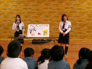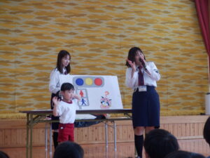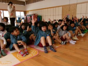 はじめに、「きんぎょがにげた」のお話を聞きました。きんぎょを探す時には、みんな積極的に手をあげていました。
