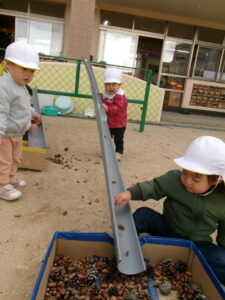 戸外ではどんぐりを見つけ転がして遊んだり