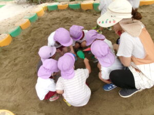 みんなでスコップを使ってお山作り🏔!
