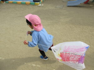 お正月遊びの凧あげをしました!!