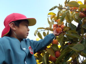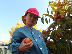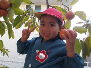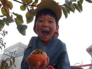 園長先生に「きく組さんも柿持って帰る?」と聞かれて、「とるとるー!」と大喜び😄