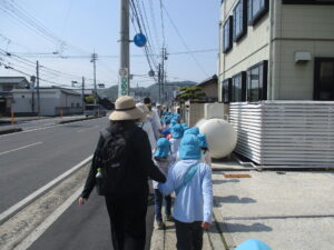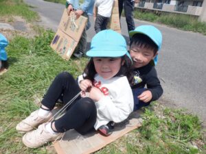 お友だちと一緒に手を繋いで百間川まで一生懸命歩きました👣