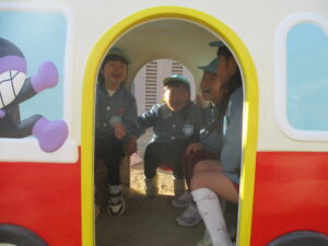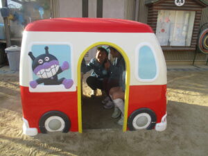 アンパンマンのバスをまるでかまくらのようにして過ごす子たちも😆