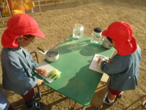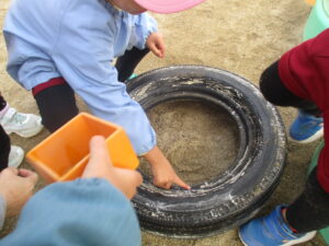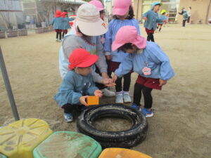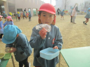 ひとつ上のクラスのお友だちは、昨日から水をはって準備をしていたら今朝、無事に氷になって嬉しそう🩷