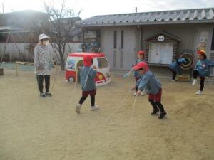 なわとびにも挑戦しています😊今日は園庭の一角でなわとび講座が見られました🔔