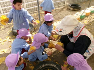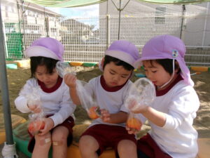 園庭にできている柿を収穫😁
