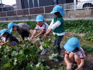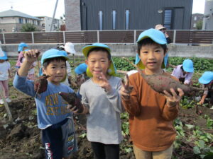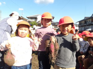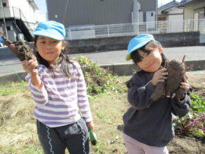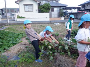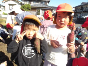 「大きいお芋できているかな?」とずっと楽しみにしていたゆり・きく組のお友だち😊